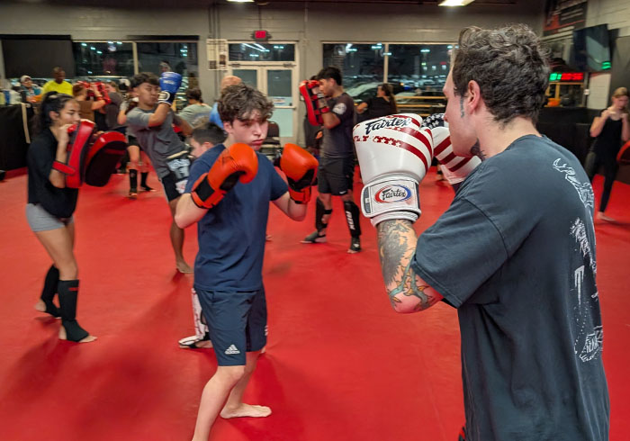 Our kickboxing class blends the techniques of traditional Muay Thai with Western Boxing and some methods of American Kickboxing and Dutch Kickboxing. This class incorporates all aspects of stand-up striking.