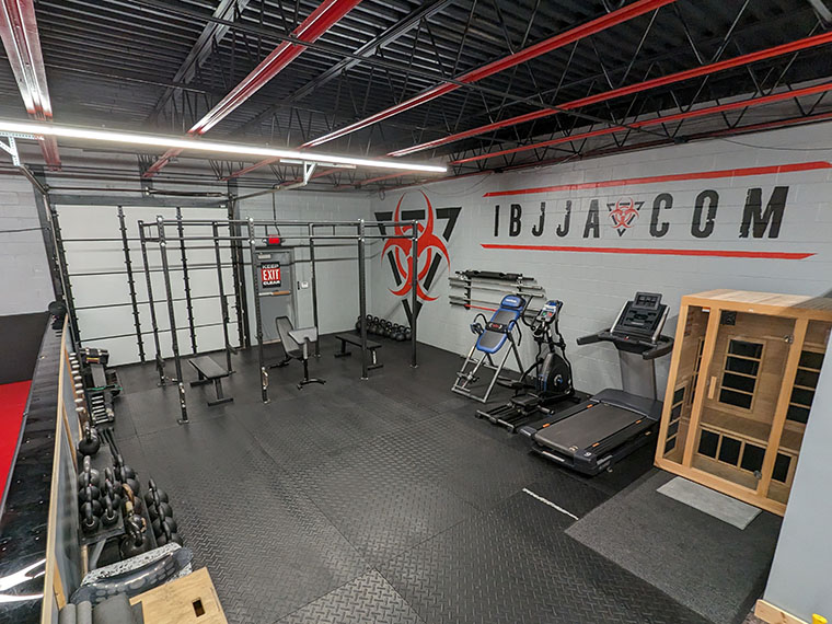 Beyond the mats, our facility boasts a well-equipped fitness area, thoughtfully curated to support your fitness goals. You'll find an array of equipment, including kettlebells, a Rogue Infinity Rig, cardio machines, maces, bands, sandbags, and an assortment of recovery tools. Whatever your workout regimen entails, we have the tools you need to excel.