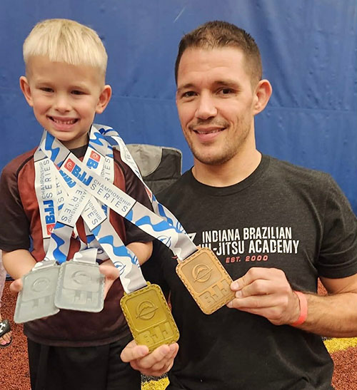Coach James with Kid Competitor at local Indiana BJJ tournament